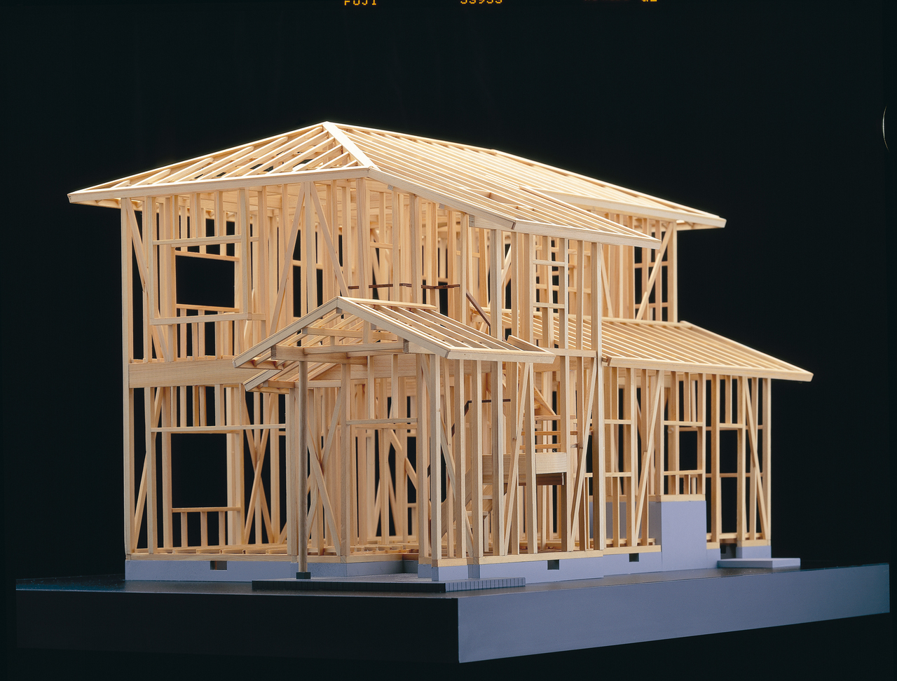 在来軸組工法の住宅の約半数にプレカット部材が用いられています。